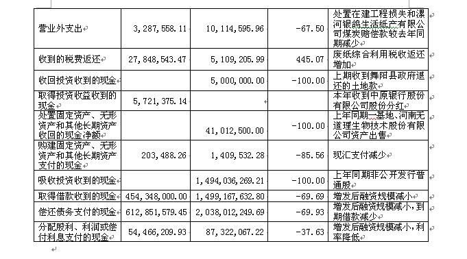 經營活動產生的現金流量凈額變動原因:公司較去年同期資產處置收益和經營性應收項目減少以及經營性應付項目增加。