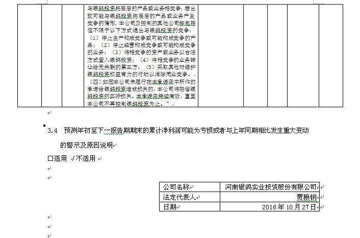 5、2016年9月5日,公司收到公司債券評級機構鵬元資信評估有限公司發來的《鵬元關于關注河南銀鴿實業投資股份有限公司相關重大事項的公告》(鵬元資信公告【2016】176號)。