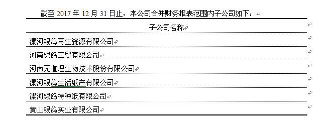 2017年10月,公司召開的第八屆董事會第二十八次會議和第五次臨時股東大會審議通過了《關于轉讓控股子公司四川銀鴿竹漿紙業有限公司股權暨關聯交易的議案》,同意公司向控股股東漯河銀鴿實業集團有限公司轉讓四川銀鴿竹漿紙業有限公司73.81%股權,轉讓價格為1元。2017年11月21日,四川銀鴿竹漿紙業有限公司已在瀘州市工商行政管理局辦理完成該項股權轉讓事項的變更登記手續。自2017年12月,四川銀鴿竹漿紙業有限公司及下屬子公司瀘州納溪巨森林竹有限公司、瀘州邦博商貿有限公司、瀘州巨源紙業有限公司不再納入本公司的合并范圍。
